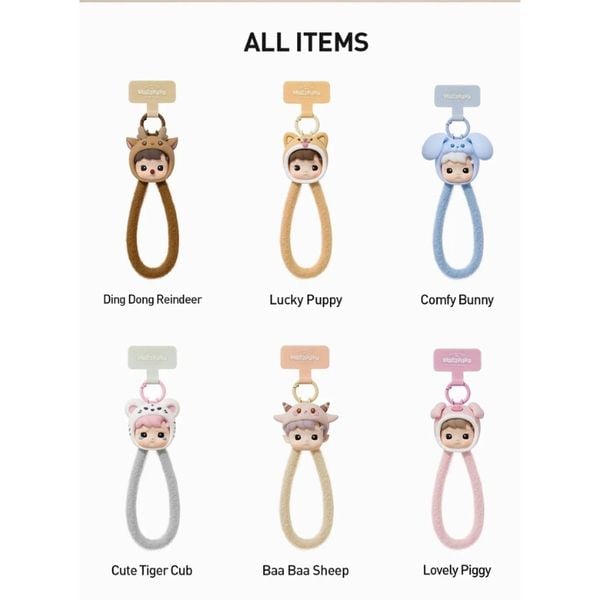 Dây đeo điện thoại Blind Box HACIPUPU Snuggle With You là phụ kiện mang đậm chất dễ thương từ POP MART – mỗi mẫu dây là một nhân vật HACIPUPU hóa thân thành các loài động vật ngộ nghĩnh như thỏ, cừu, cáo, kì lân… Được đóng gói theo dạng blind box, bạn sẽ không biết mình nhận được thiết kế nào cho đến khi mở hộp – tạo nên cảm giác háo hức và bất ngờ.