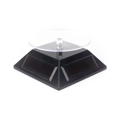 Đế xoay trưng bày lấy nguồn năng lượng từ pin tiểu và công nghệ hấp thụ năng lượng ánh sáng (4 mặt kính ở 4 phía của chân đế). Điều này giúp