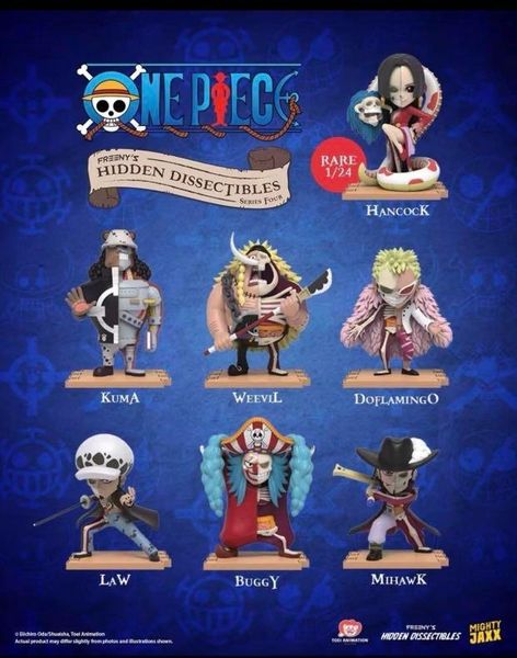 Trong phiên bản mô hình đồ chơi Blind box One Piece The 4th series of Freeny’s Hidden Dissectibles sẽ bao gồm 7 nhân vật trong băng nhóm Thất Vũ Hải và cô nàng duy nhất trong hội - Hancock chính là nhân vật đặc biệt mà ngay khi bạn may mắn sẽ khui ra được cô nàng khiến ai cũng mê mẩn.