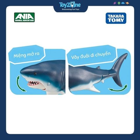 Cá mập Megalodon đến từ dòng mô hình ANIA của Takara Tomy là món đồ chơi lý tưởng cho những ai yêu thích thế giới động vật cổ đại. Mô hình tái hiện sinh vật biển khổng lồ này với tông màu xám xanh đặc trưng, đường nét cơ thể mạnh mẽ, sống động, tạo cảm giác như Megalodon đang thực sự lướt qua làn nước.