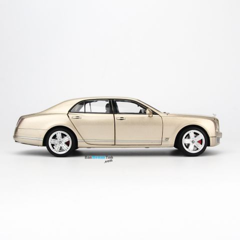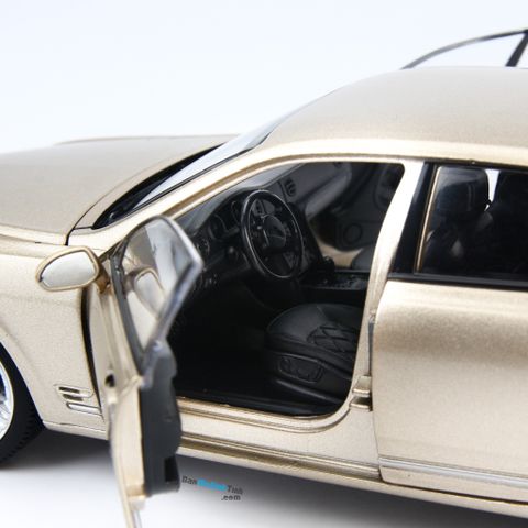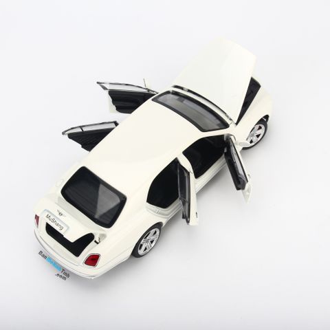 Giới thiệu: : Mô hình xe Bentley Mulsanne tỷ lệ 1:24 do Doublehorse sản xuất. Mẫu xe mô hình này đã tái hiện một cách chân thực đường nét sang trọng, lịch lãm đậm chất quý tộc có trên Bentley Mulsanne xe thật. Thân xe sử dụng hoàn toàn bằng chất liệu kim loại cùng lớp sơn tĩnh điện phủ bên ngoài, nội thất bên trong bằng nhựa. Bentley Continental GT W12 tỷ lệ 1:24 sở hữu kích thước nhỏ nhắn với chiều dài chỉ 18cm, ngang 8cm, cao 6cm, phù hợp để trưng bày trong showroom, phòng làm việc, phòng khách hoặc phòng ngủ,... Mô hình xe Bentley Mulsanne tỷ lệ 1:24 có thể mở được cả 04 cửa, capo trước và cốp sau, 04 cửa xe đều full kính, bánh trước có thể đánh lái được.