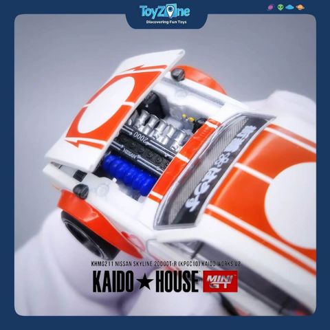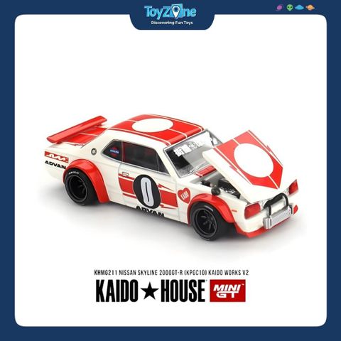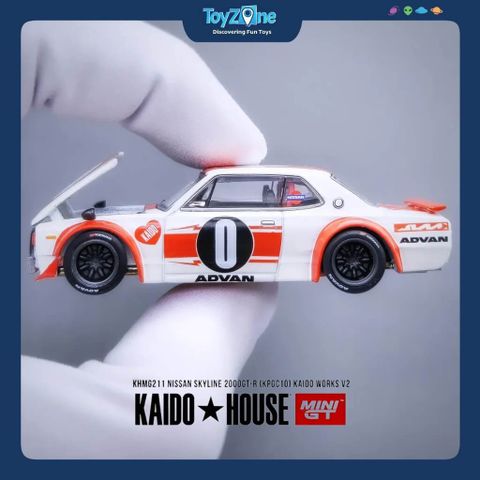 Mô hình Nissan Skyline 2000GT-R (KPGC10) 1:64 KAIDO HOUSE x MiniGT là sự tái hiện hoàn hảo của huyền thoại JDM trong phong cách độ đặc trưng Kaido. Chiếc KPGC10, hay còn gọi là “Hakosuka”, vốn đã trở thành biểu tượng trong lòng giới đam mê xe, nay được khoác lên mình diện mạo mới với tinh thần đường phố Nhật Bản đầy táo bạo.