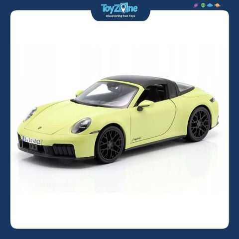 Phiên bản này thuộc series 911 thế hệ 992.2, nơi Porsche bắt đầu đưa công nghệ Hybrid vào dòng 911 hiệu năng cao, nhưng vẫn giữ thiết kế Targa mang tính biểu tượng… phần mui đặc trưng, khung vòm phía sau và dáng xe quen thuộc. MAISTO tái hiện lại tinh thần ấy ở tỷ lệ 1:18 khá trọn vẹn: tỷ lệ chính xác, thân xe bằng hợp kim die-cast cho cảm giác chắc tay, một số chi tiết có thể đóng mở, nội thất bên trong được làm tỉ mỉ đủ để nhìn thấy sự khác biệt so với các dòng mô hình phổ thông.
