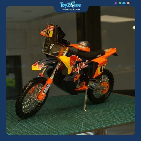 Bạn đã từng nghĩ một chiếc mô tô chinh phục sa mạc Dakar khắc nghiệt sẽ trông ra sao khi được thu nhỏ lại chưa? Mô hình xe Red Bull KTM 450 Rally Dakar 2024 1:6 MAISTO mang theo cảm giác đó… bụi bặm, mạnh mẽ và đầy tinh thần phiêu lưu. Nhìn vào là liên tưởng ngay đến những chặng đua dài vô tận, nơi con người và cỗ máy phải vượt qua giới hạn của chính mình.