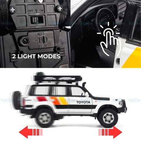 Mô hình xe Toyota Land Cruiser LC80 Off-Road 1:24 của CHEZHI nổi bật với thiết kế tinh xảo, tái hiện chân thực từng chi tiết đặc trưng của dòng xe huyền thoại, từ lưới tản nhiệt, đèn pha đến hệ thống treo off-road mạnh mẽ. Sản phẩm được chế tác từ chất liệu hợp kim và nhựa cao cấp, mang lại sự bền bỉ và cảm giác chân thực khi cầm nắm. Bên cạnh đó, mô hình còn được trang bị các chức năng động như cửa xe, capo và cốp có thể mở, bánh xe xoay linh hoạt, tạo sự thú vị cho cả việc trưng bày và chơi. Với tỉ lệ 1:24 chuẩn xác, mô hình giữ nguyên các tỷ lệ và đường nét của phiên bản thực tế, trở thành lựa chọn hoàn hảo cho những người yêu thích xe địa hình và đam mê sưu tầm mô hình chất lượng cao.