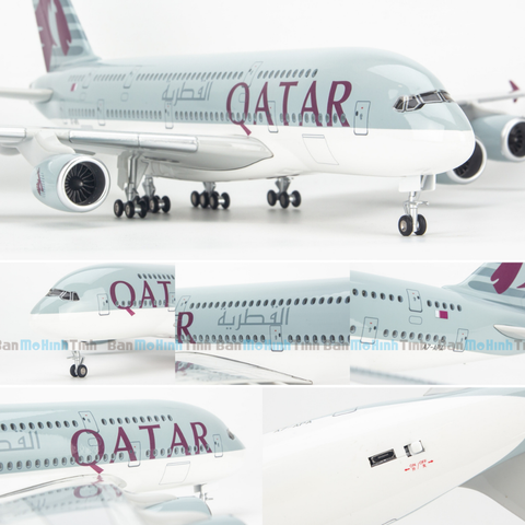 Với thiết kế mô phỏng theo máy bay thật. Máy bay Mô hình Airbus A380 Qatar Airways được phủ lên một lớp sơn bóng, các chi tiết được thể hiện đầy đủ từ cánh quạt đến các cửa của máy bay. Điều đặc biệt, Mô Hình máy bay mới này các cửa sổ được thiết kế và được bọc một lớp kính trong suốt như máy bay thật. Bên trong được lắp đặt thêm hệ thống đèn LED tự động. Máy bay khi phát sáng trông rất thú vị và làm sống động hơn đối với ngành mô hình. Rất thích hợp để trưng bày trên bàn làm việc hay phòng làm việc, đồng thời cũng sẽ là món quà rất ý nghĩa để dành tặng các con, bạn bè, người thân,...